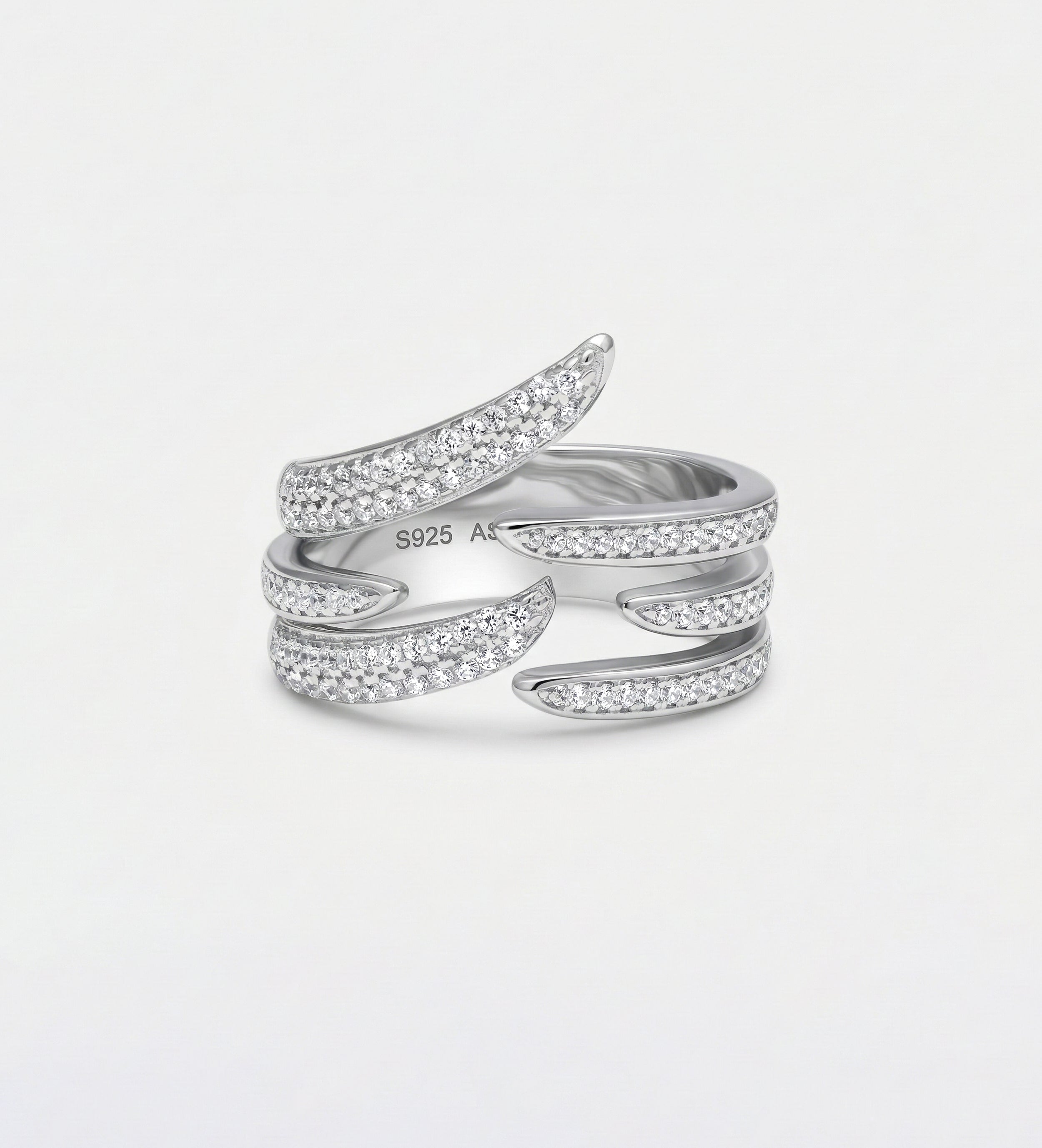 Pave Zig Ring in 925 Silver with High Quality Simulated Diamonds