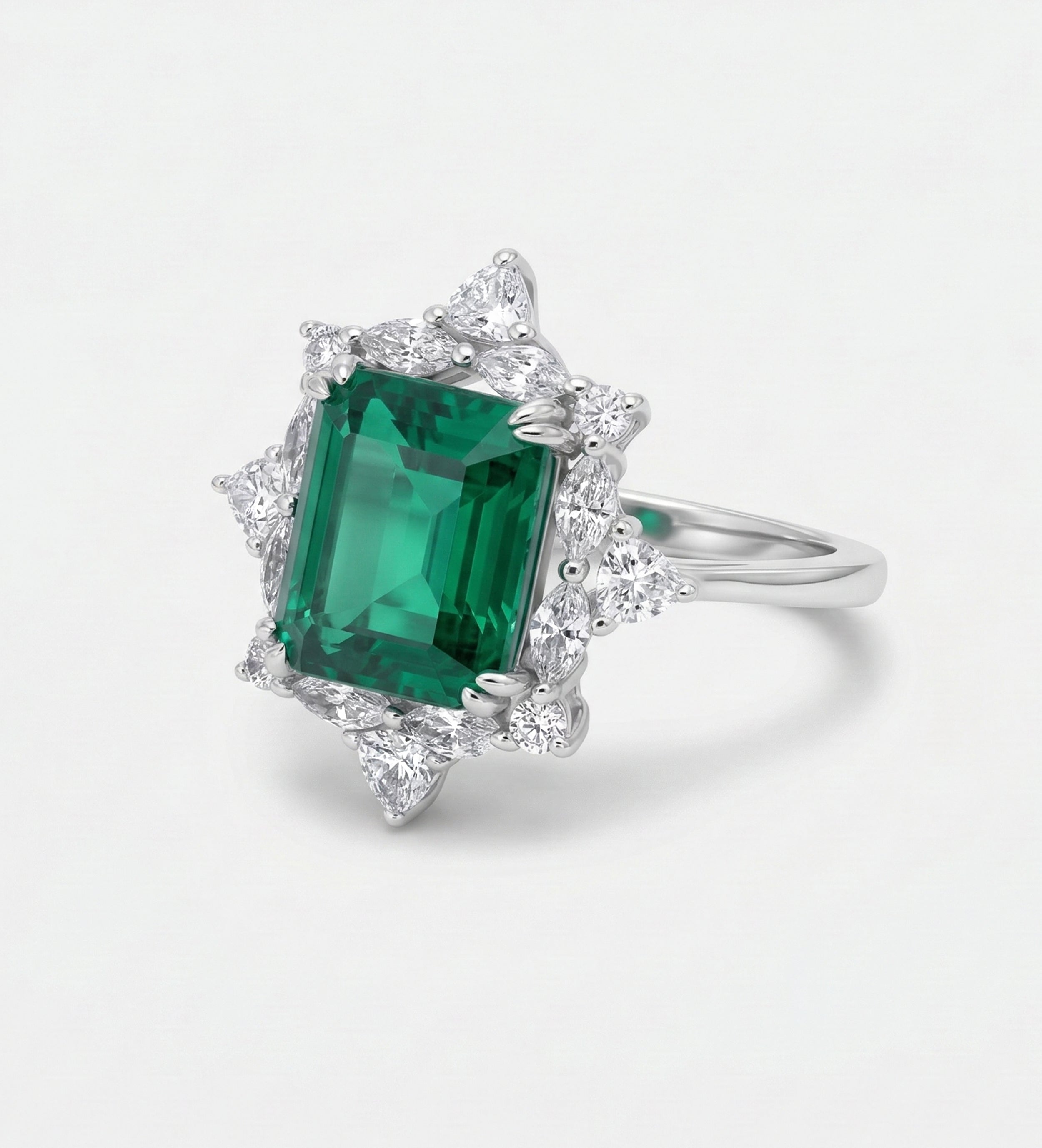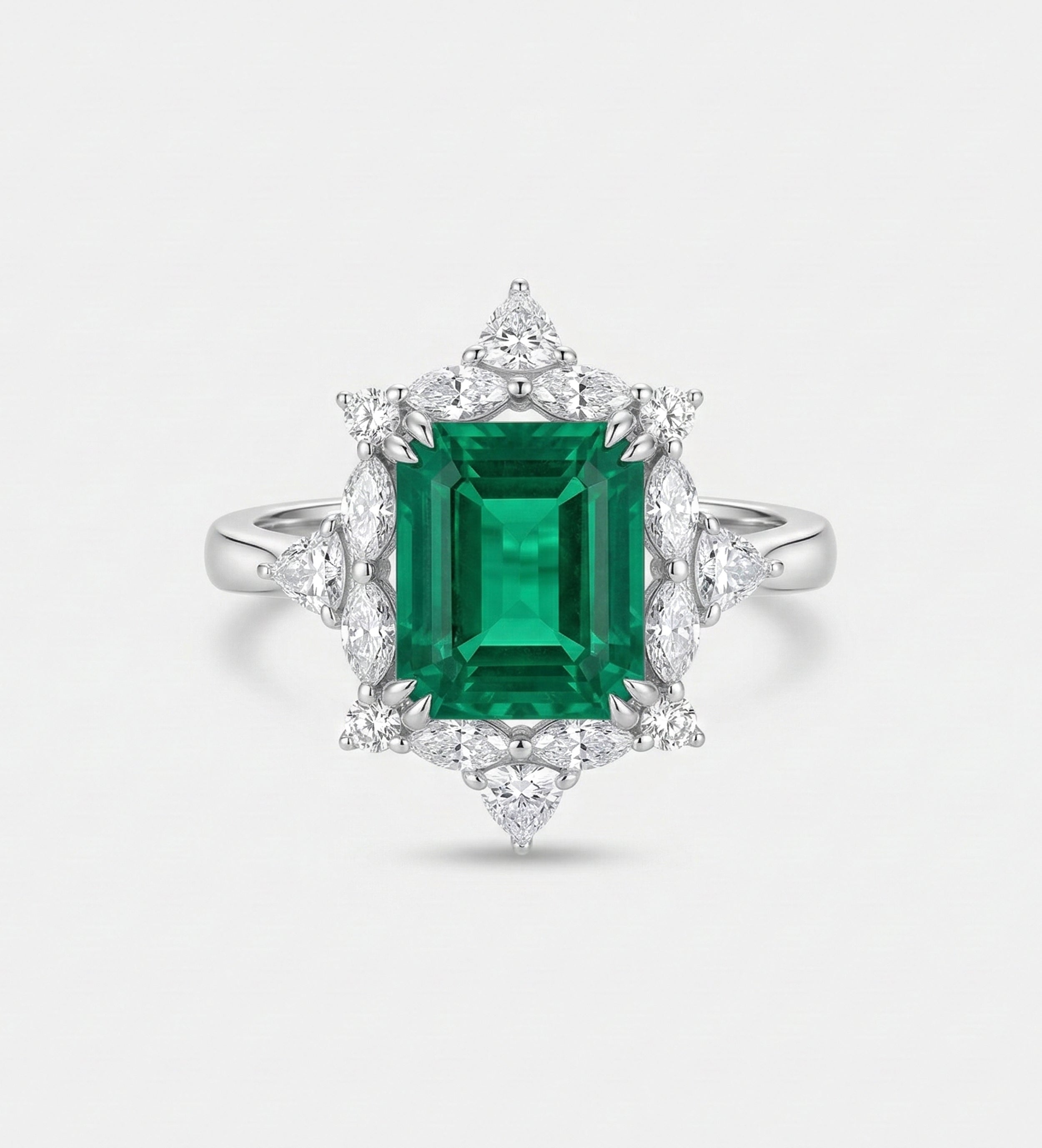 Emerald Nova Ring in 925 Silver High Quality Simulated Diamonds and Emerald Stone
