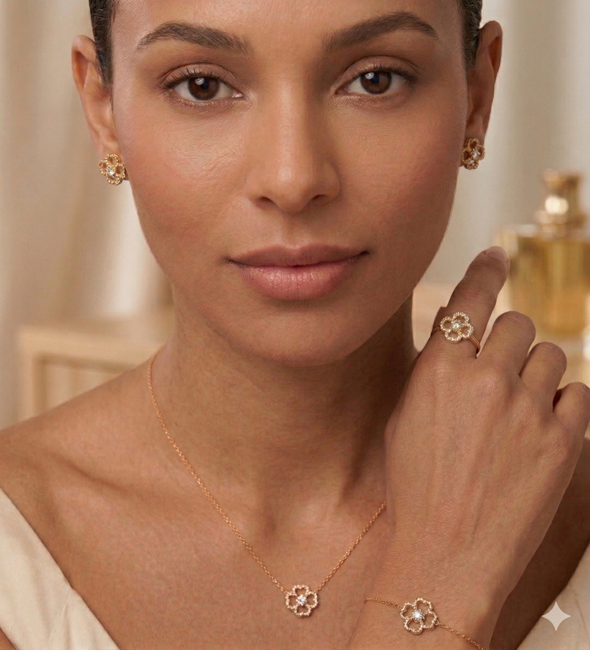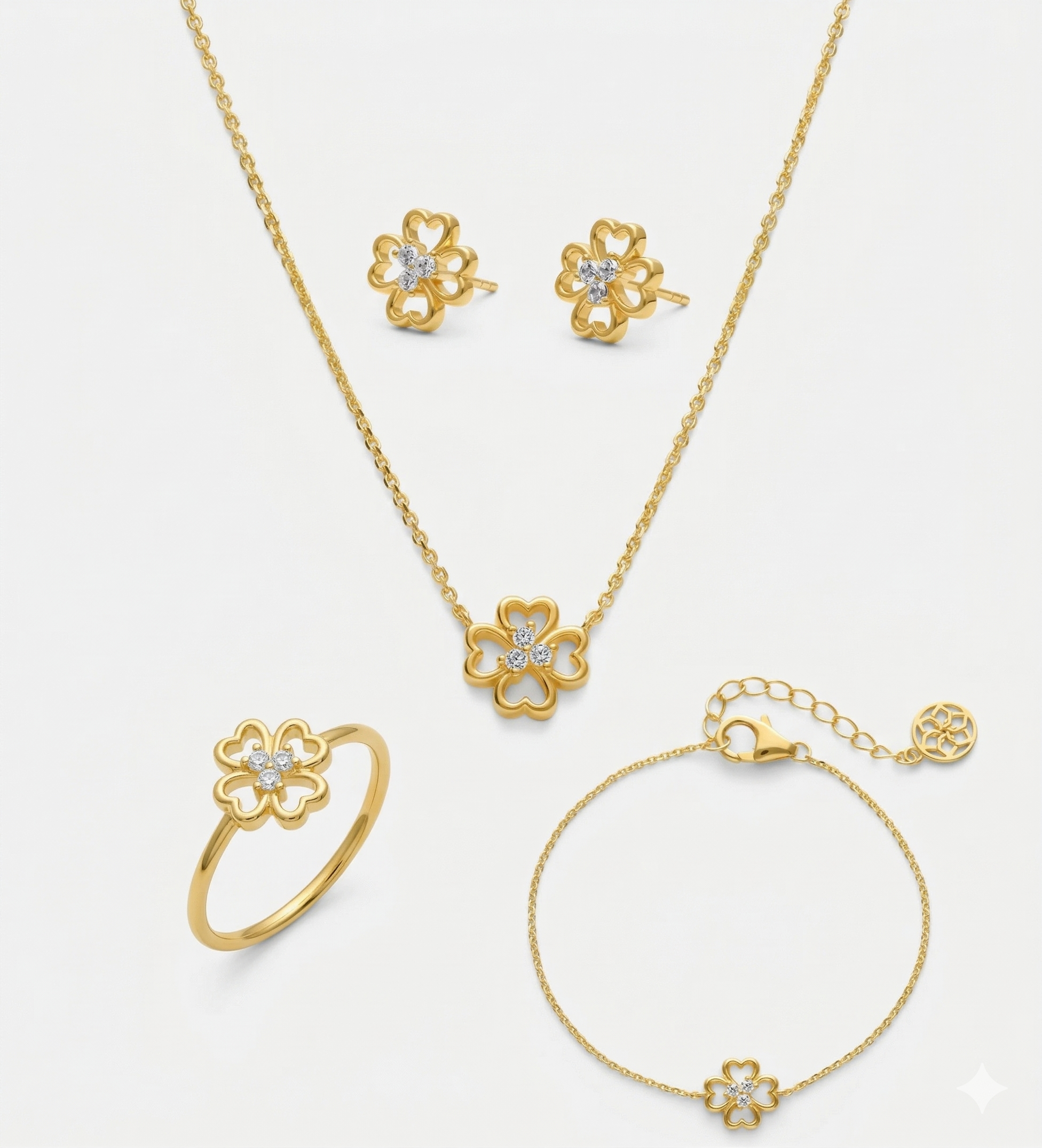 Featuring a delicate flower charm with three sparkling center stones. This beautiful Lucky Clover Set embodies elegance and grace. The intricate details of the flower add a touch of magic. Wear it as a reminder of beauty and positivity in your life.