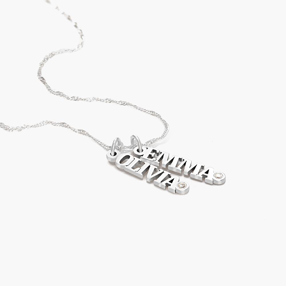 Vertical Name Necklace With Diamond - Sterling Silver